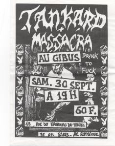 Un soir de concert de Tankard au Gibus, avec le fameux Yann et Gérard-le batteur-beauf, on est allé quémander des bières et j’ai fait ma maline en parlant allemand ; devenant l’Interprète de la soirée, la fille indispensable qui sert à traduire des trucs intelligibles et fins comme « rotons ensemble » « à la tienne » « oh là là j’en tiens une bonne » et « on baise ? »