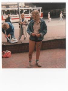 Conséquemment, je revendiquais un look hybride, de non appartenance à rien (conditionnée aussi par le budget fringues pas très prioritaire à la maison) : j’ai eu quand même un collier de chien, mais j’ai pas voulu niquer mes cheveux longs avec de la colle à bateau, je portais mes pulls troués, avec mes frocs à rayure heavy métal, mes lunettes rondes de Ghandi, mes baskets de tennisman. Je refusais tout ce qui pouvait m’intégrer pleinement à un groupe mais comme à Charleville tous les énervés réunis on était une centaine à tout casser, on allait pas me faire chier. Et non à la veste militaire RDA, non au perfecto, pas de coupe dégradée permanentée si chère au métal des années 80, -rappellez vous les coiffures de Motley Crüe- ni santiags, ni docs.