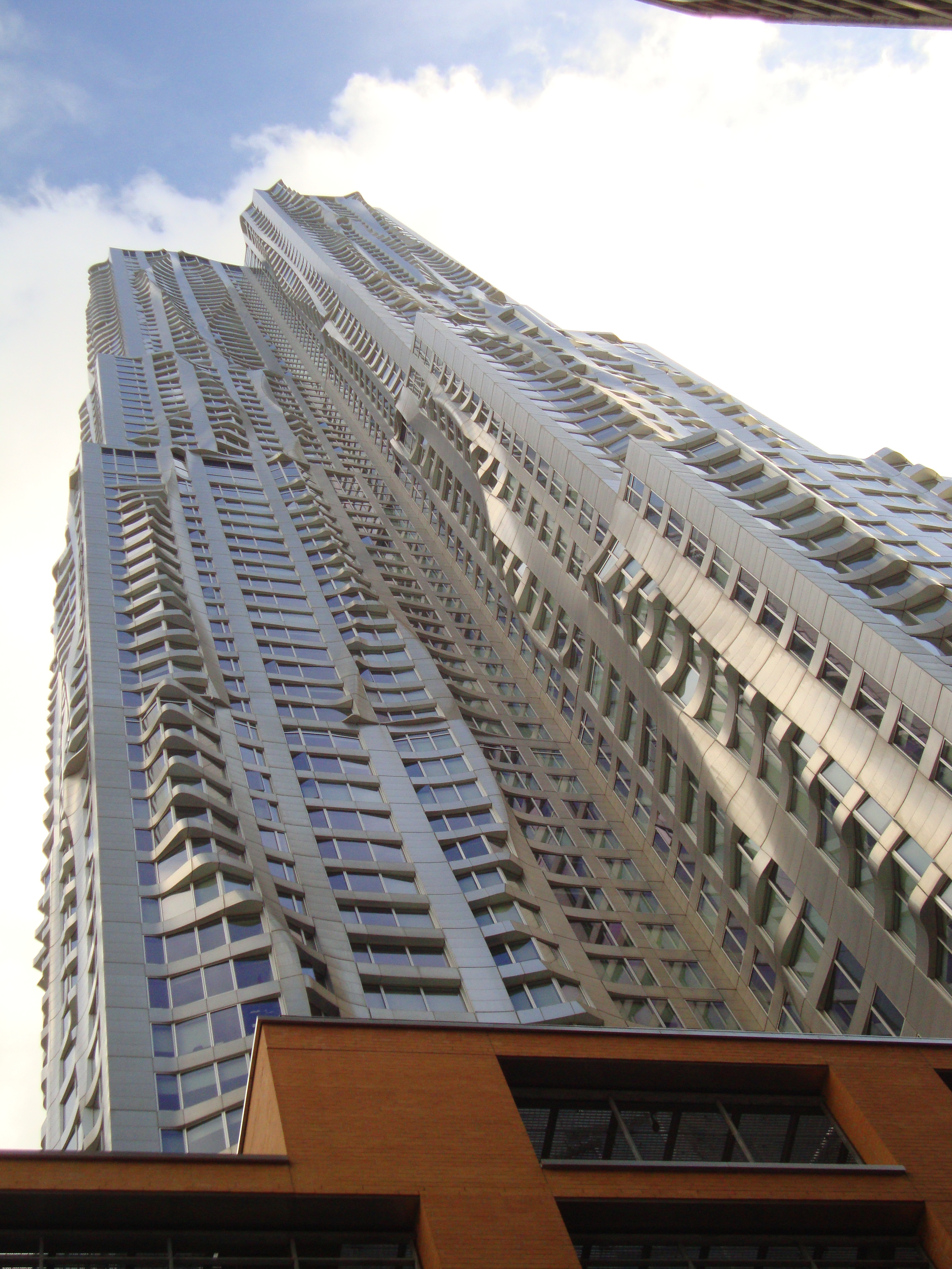 En arrivant à Manhattan, on a bien vu la tour de Gehry marrante, qui a l’air d’étre en plastique fondu et qui est très haute -comme on voit sur la photo de droite-