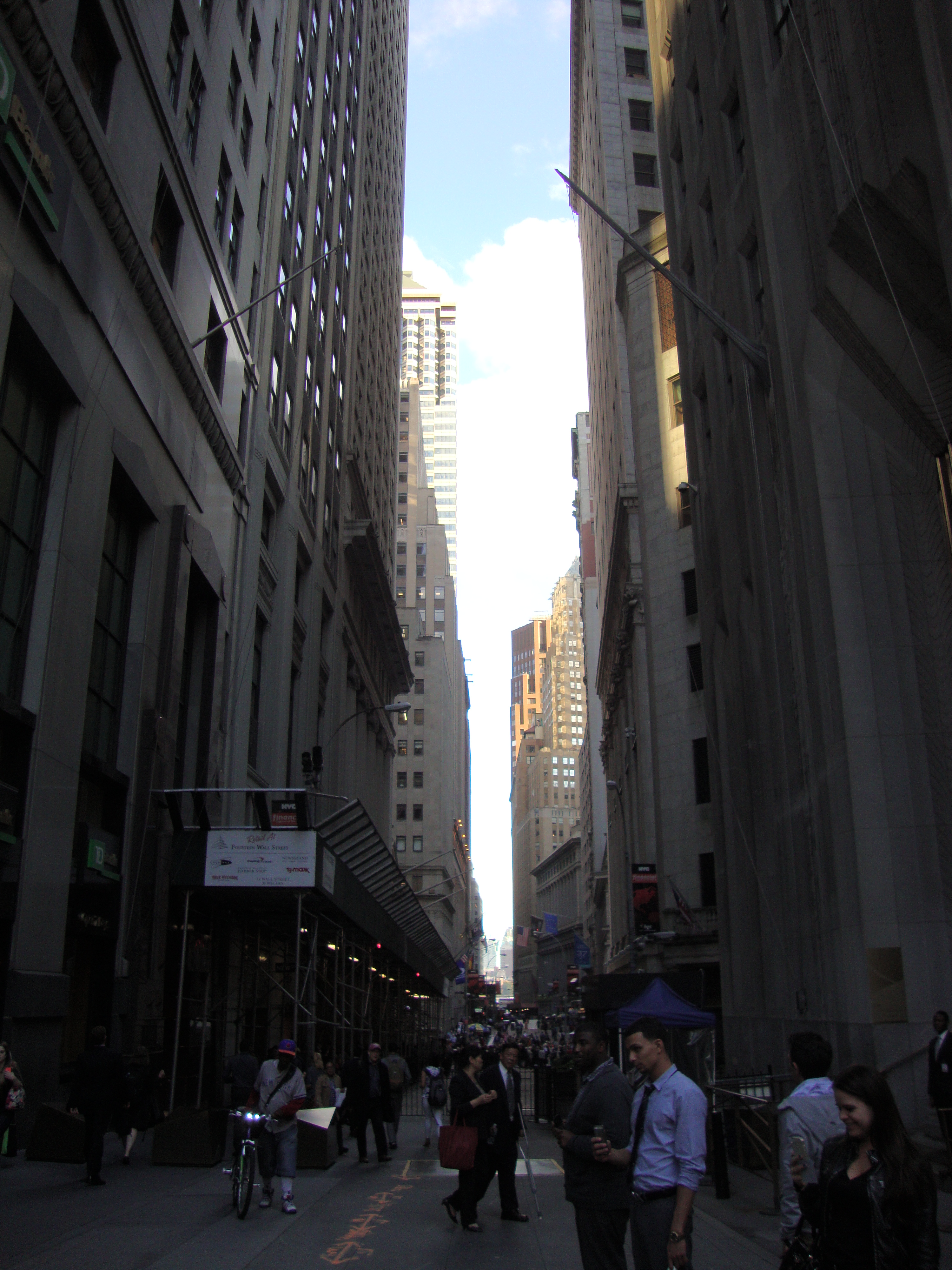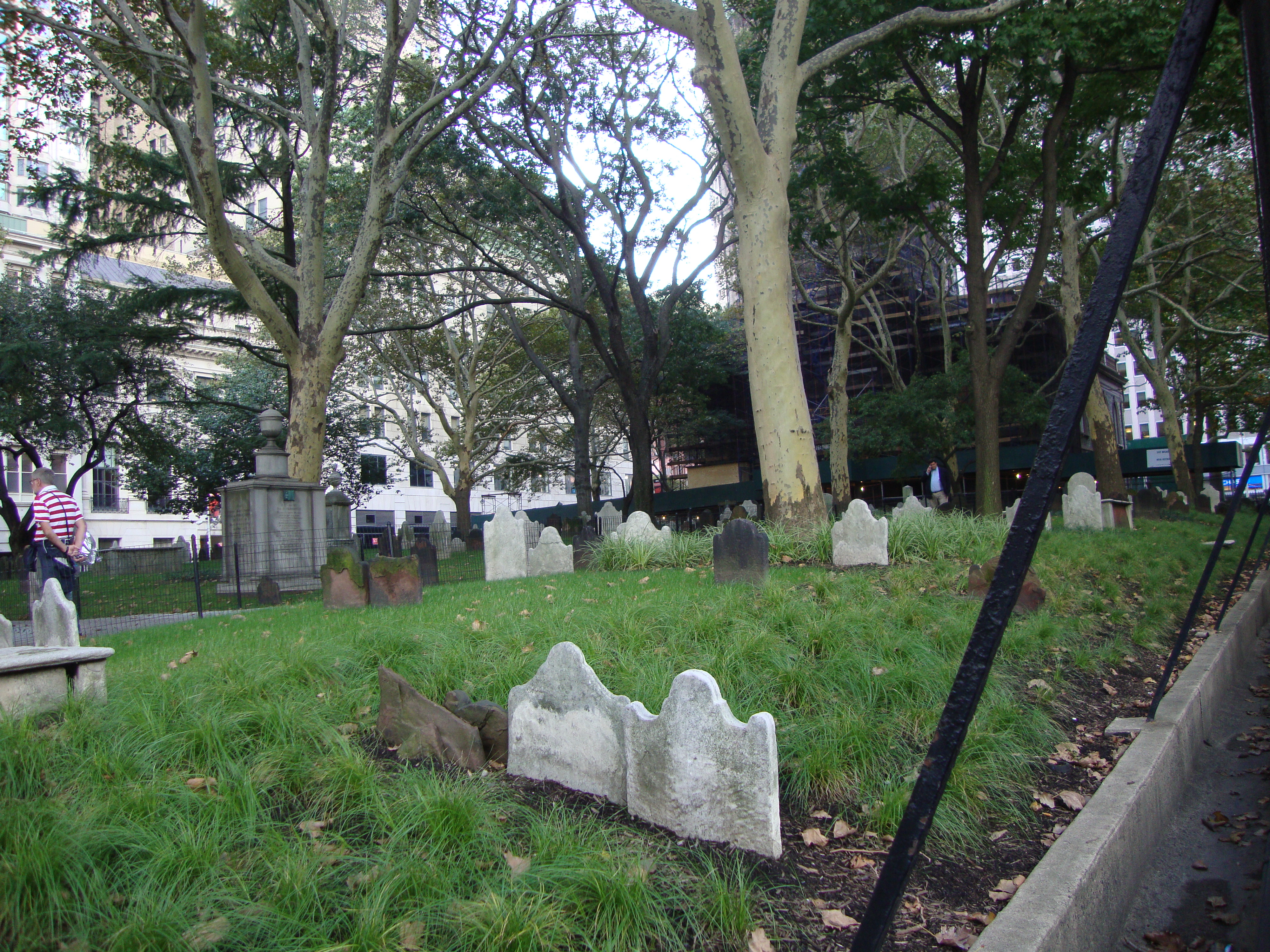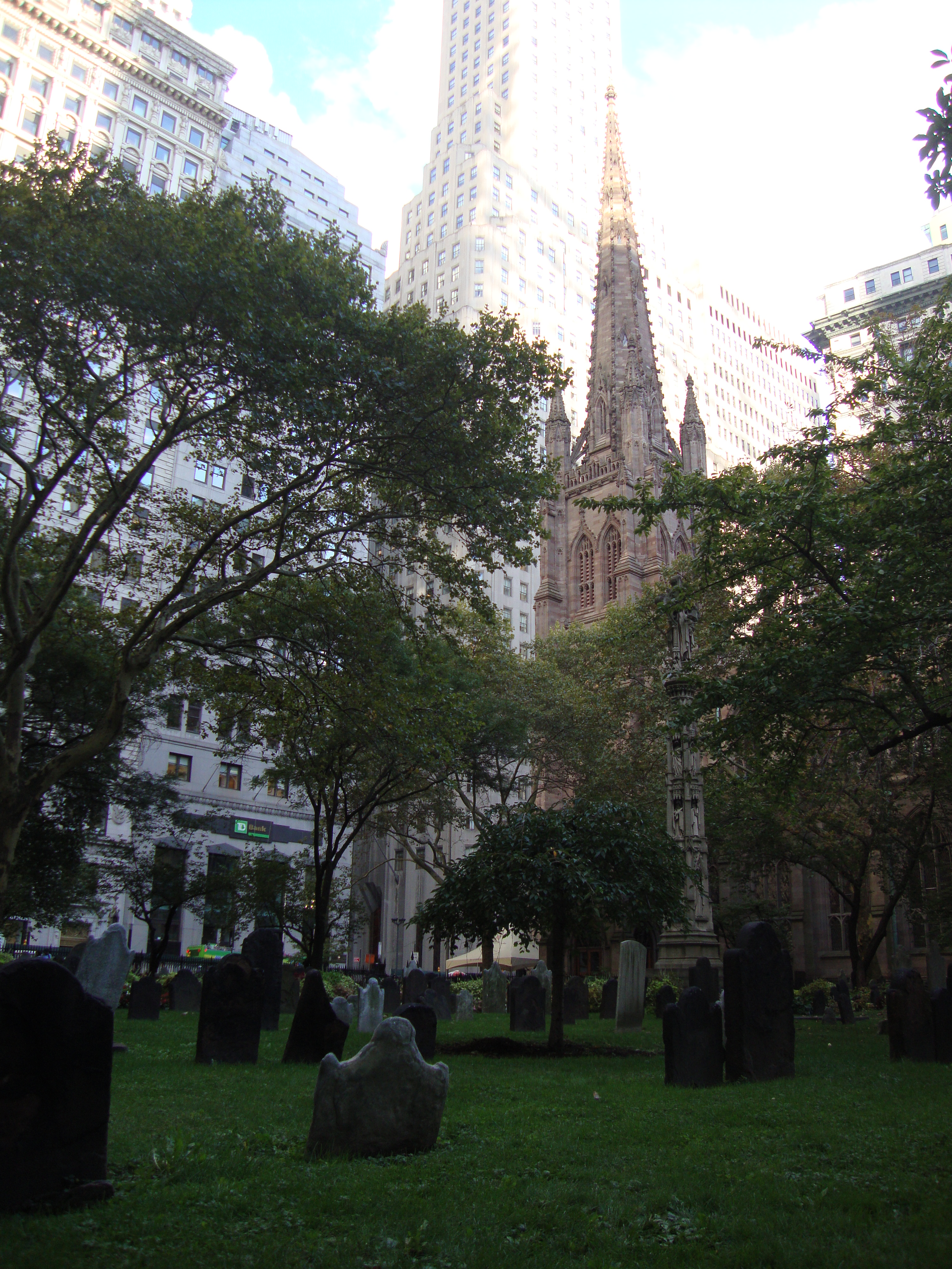 Ensuite on a été voir Wall Street qui est très étroite et pas très grande, tout le quartier est très serré et très petit (c’est à peine plus grand que les 4 rues de St Michel). Une petite église Trinity church est plantée au milieu des immeubles, ainsi qu’un cimetière juste avant Ground zero….