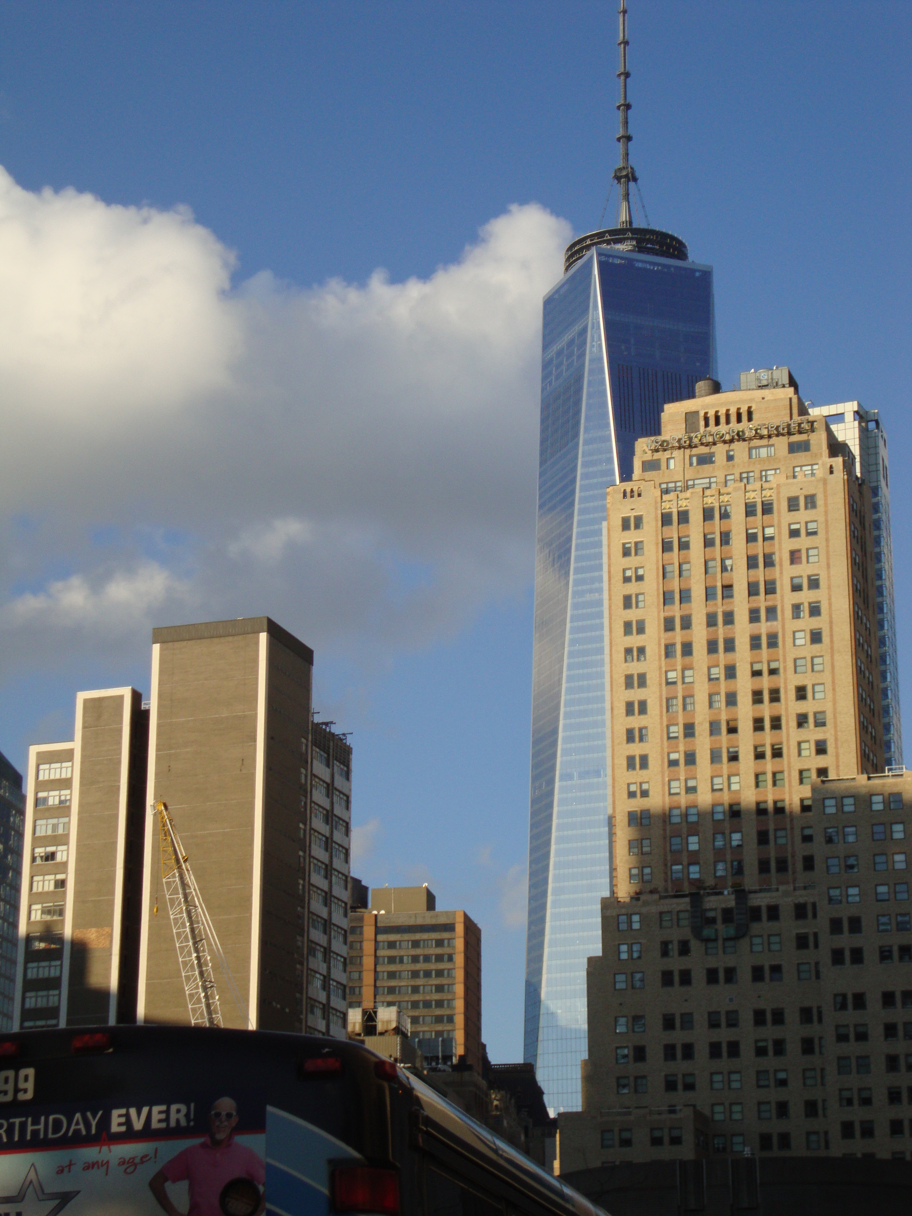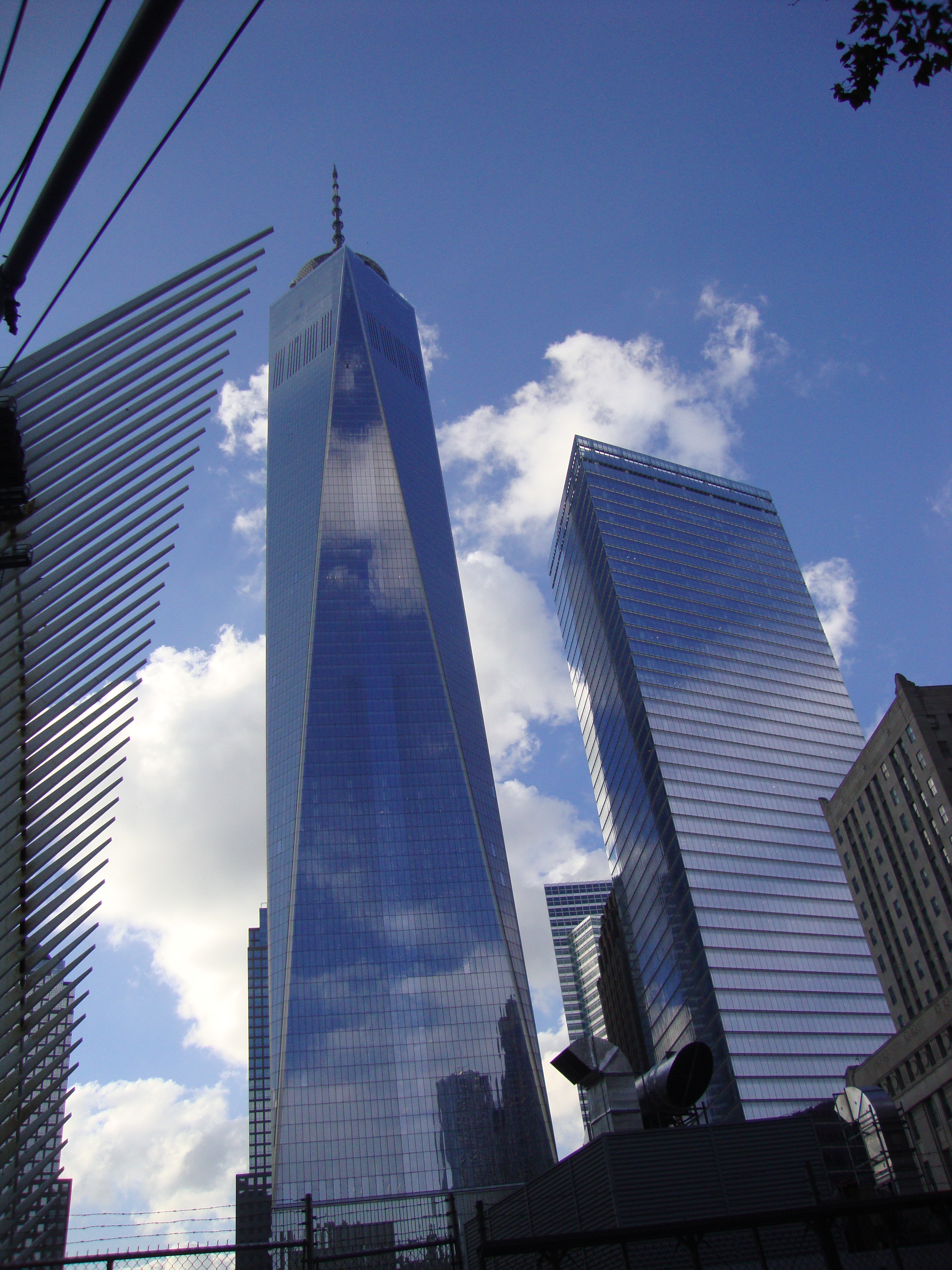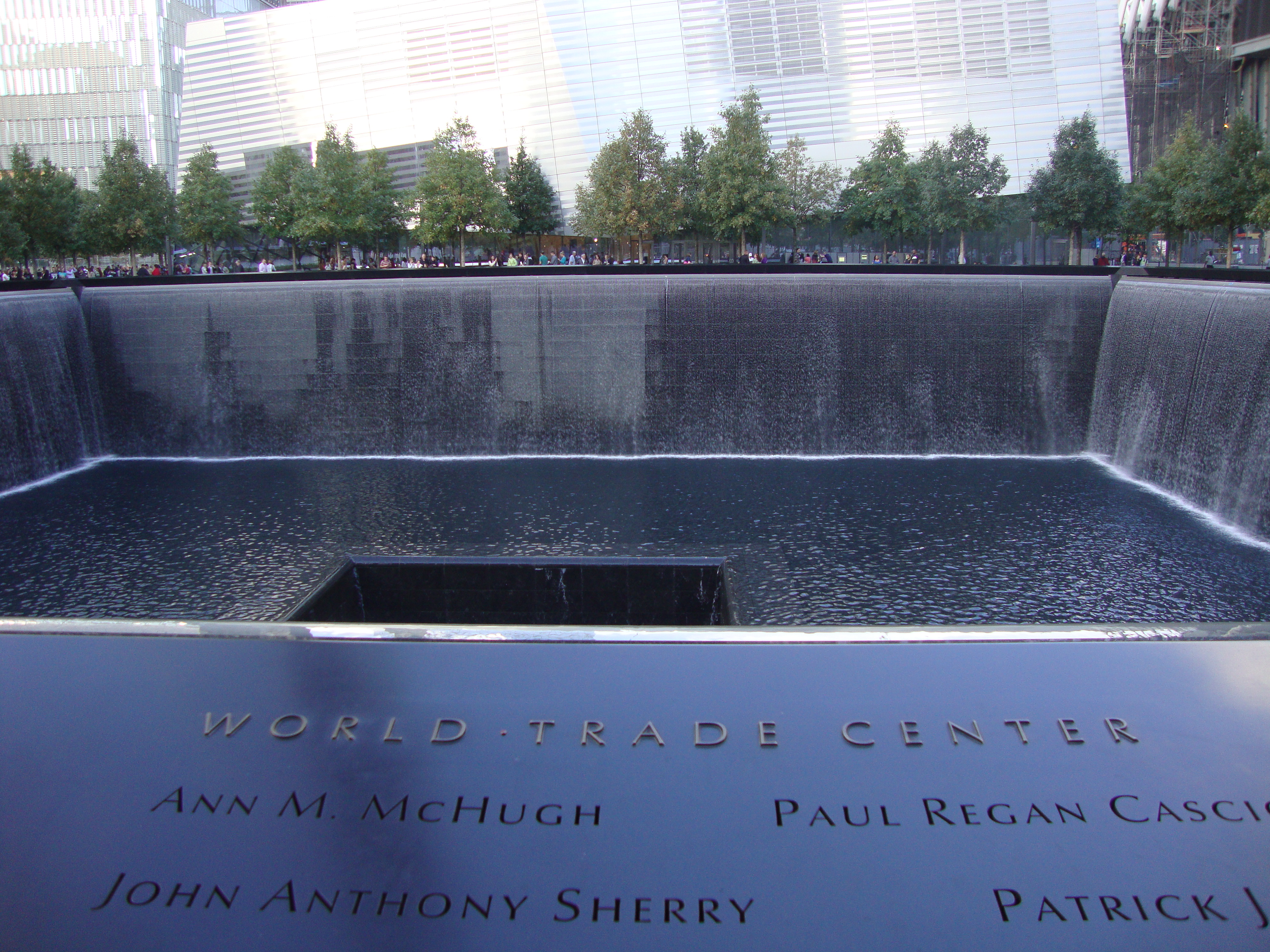 Et puis nous sommes allées à Ground Zero qui est toujours en travaux. Mais l’esentiel est fait, trois tour ont été reconstruites la « liberty tower » et deux autres plus petites. A la place des anciennes twins, il y a un memorial (c’est vraiment leur truc le memorial, on a déjà vu celui des os d’esclaves, celui des indiens disparus…). C’est un grand trou carré, avec de l’eau qui chute dans un trou central et les noms des disparus de septembre 2001 gravés dans le tour en ? marbre du carré.