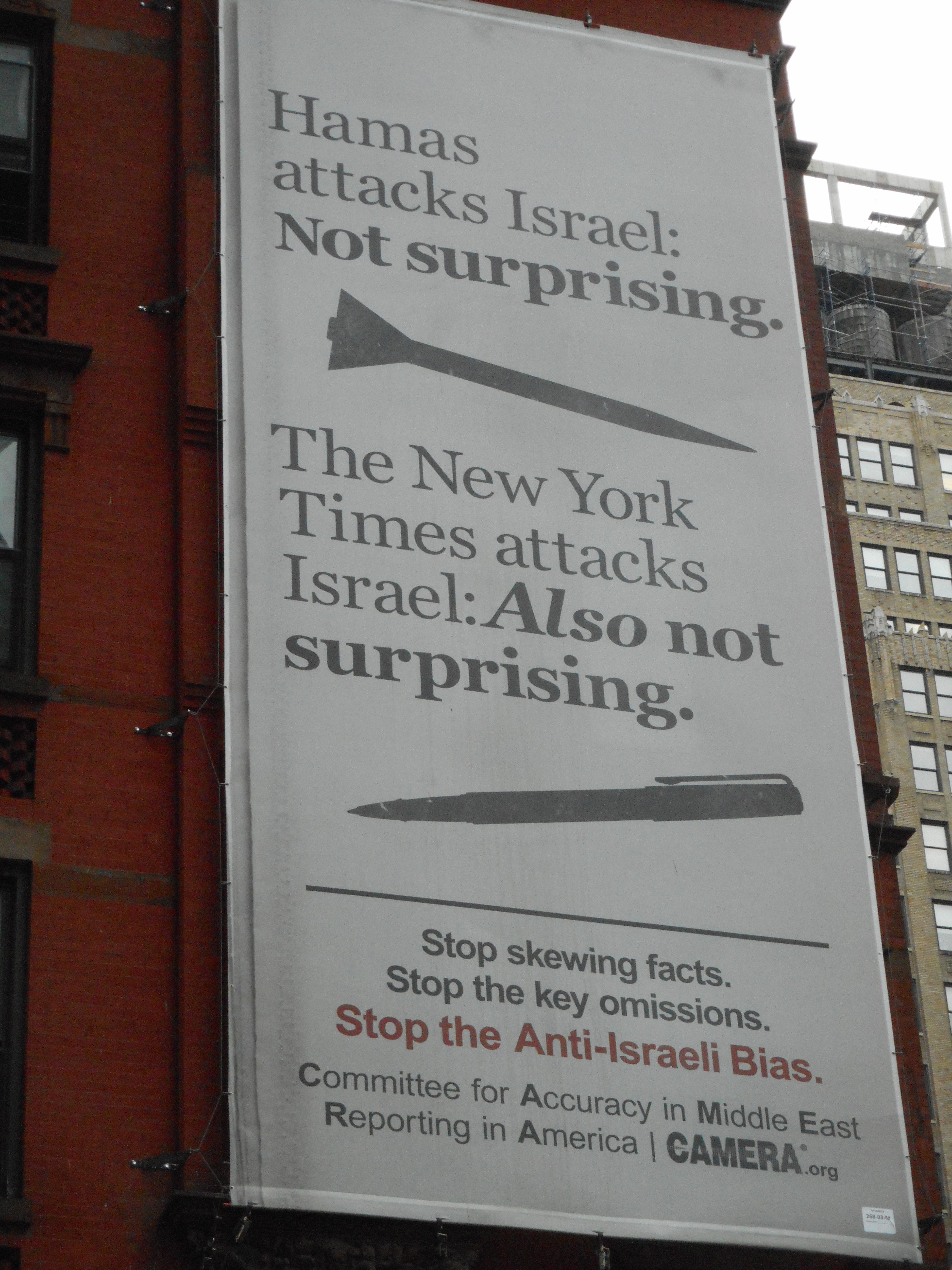 Mais en route pour la gare, on a vu le New York Times, avec sur le bloc d’en face une protestation anti anti-sioniste.