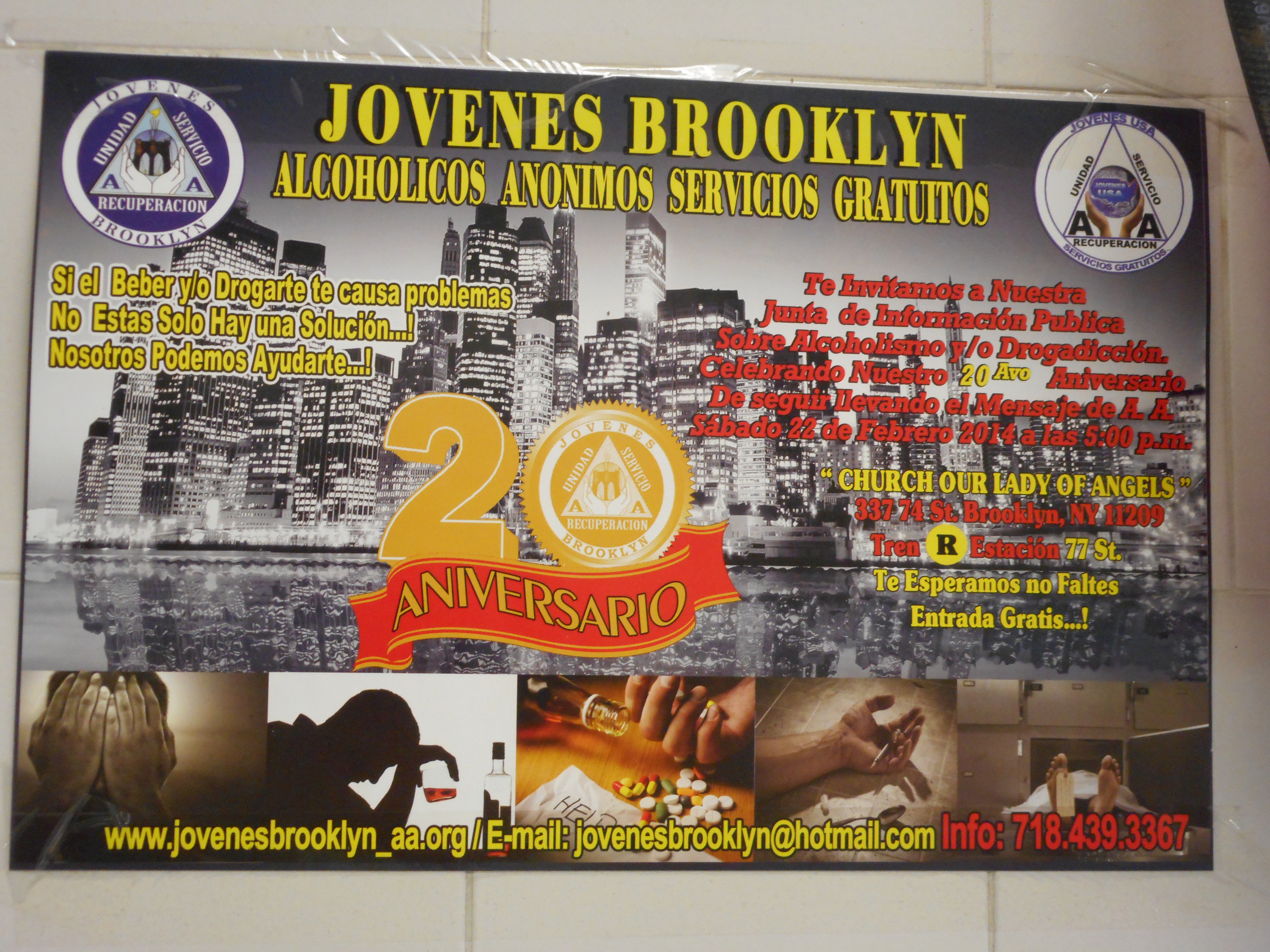 en reprenant le linge, je vois que si on est alcoolique et qu’on parle espagnol, on peut aller aux 20 ans de l’association de AAA latinos.