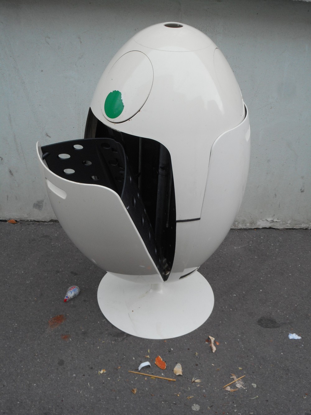 et les gens se débarrassent de leurs objets vintage à la poubelle (poubelle à tri jetée rue Cantagrel paris 13)