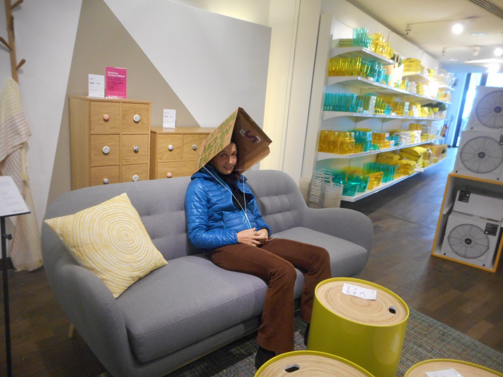 D’abord, on va à Répu au lieu de rendez-vous à Habitat … et comme on est en avance avec Sylvie on va tester les canaps bien au chaud.