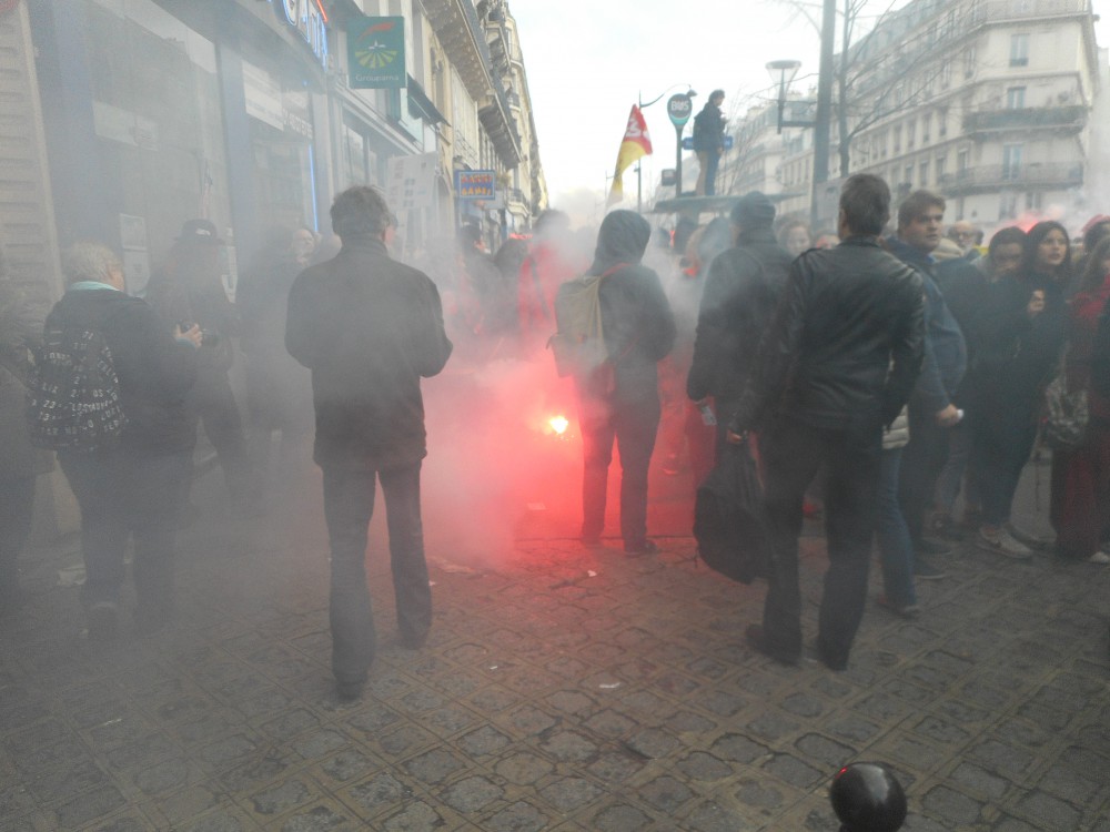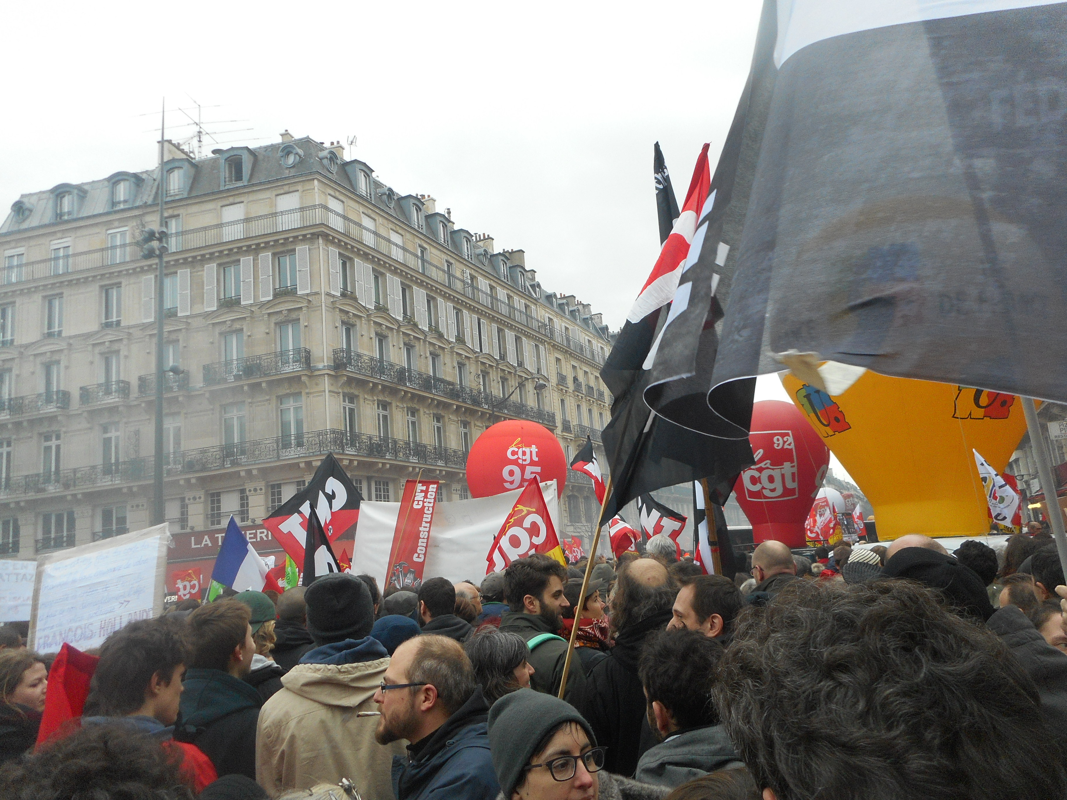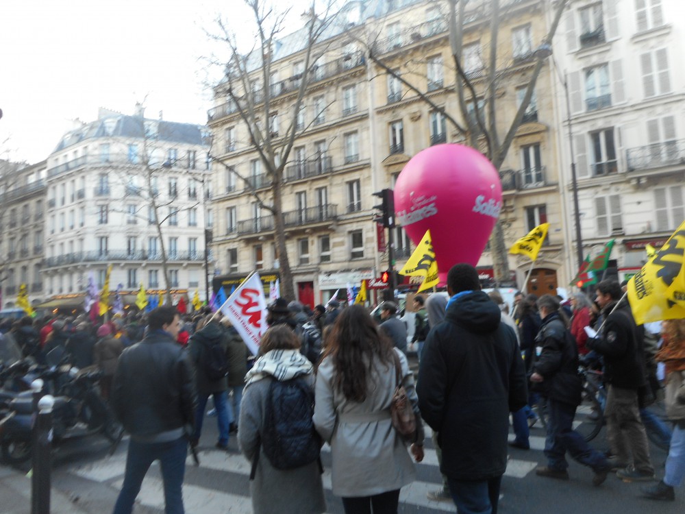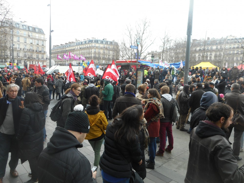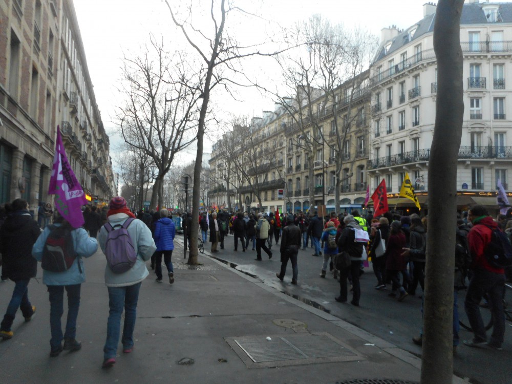 Et là c’est le début de la manif y’a vraiment trop de gens sur la place on est trop serrés et du coup on perd nos potes qu’on venait de retrouver et encore on a pas trouvé tout le monde… les textos ne passent plus, bon faut y aller comme dit Raoul Petite