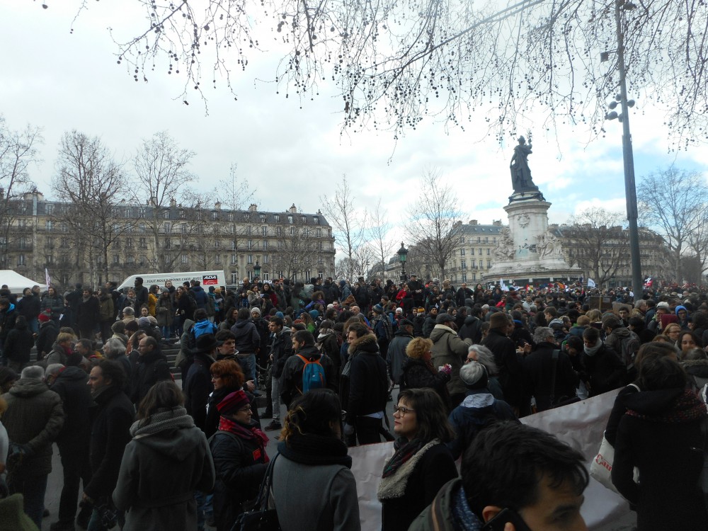 Et du coup on est à Nation, bon ben on y retourne le 30 mars, hein « tousensembletousensemblelàlà », parce que ça m’étonnerait qu’ils lâchent l’affaire… mais d’abord ! on va refaire le monde au Dalou avec les potes qu’on a retrouvés en partie.