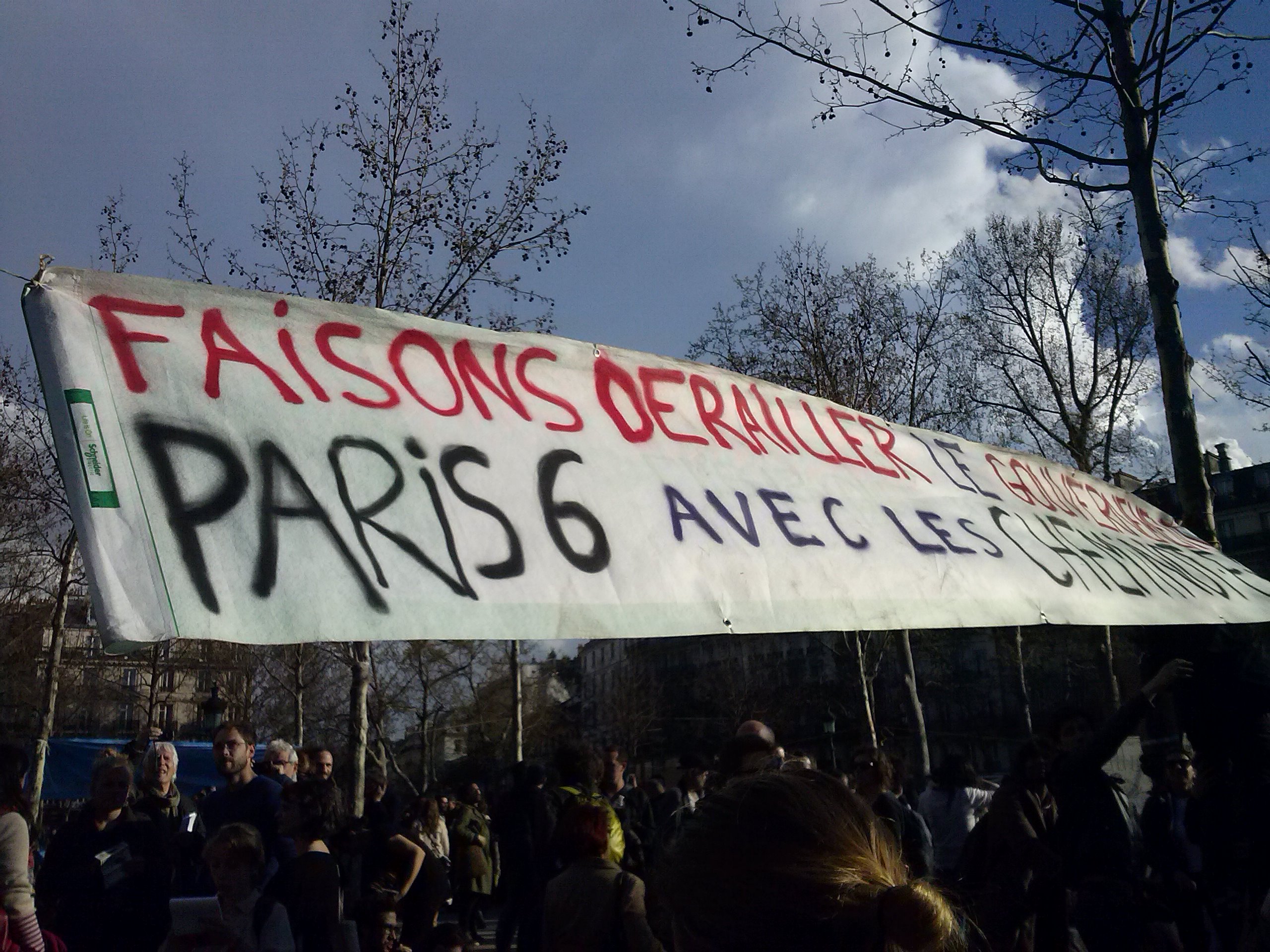 Vers 20h les étudiants de Paris 6 arrivent en renfort, les cheminots en grève aussi -qui avaient protesté à St Lazare, et tout est presque prêt.