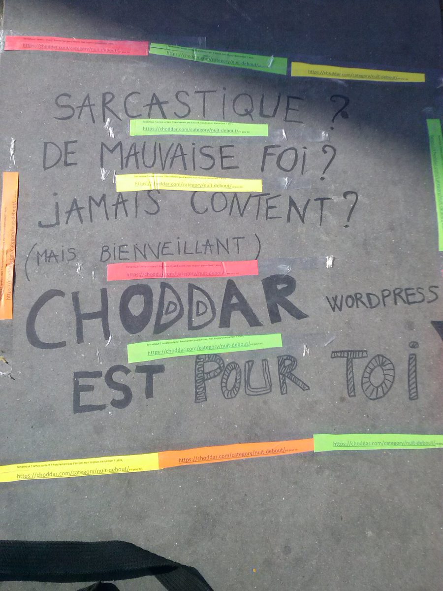 ah bon ? ben j’en connais plusieurs (des français si on veut mais on s’en fout non ?) qui dorment là bas et qui sont sur place depuis un bail… et il ajoute « il s’agit pas de faire son petit dal (lentilles) et de l’apporter pour faire sa B.A parce que ça fout la merde plus qu’autre chose… » Cf le repas carnage auquel j’ai assisté j’imagine… Eh bien, je suis sûre que la dame qui a cuisiné des plats toute la journée l’autre jour serait ravie d’être prise pour une neuneu qui fait un acte de bienfaisance … parce qu’en fait elle l’a déjà fait plein de fois et ça a l’air de plutôt fonctionner d’habitude. Bon je vais pas faire opposition radicale, sinon je vais lui dire des gros mots, respire, d’abord l’AG n’est pas fermée aux anglaises, si ? il m’agace et je vais préparer un blabla pour l’AG de demain !