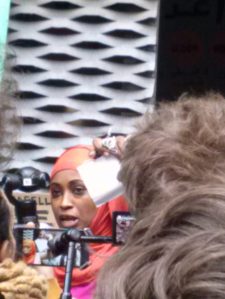 Quand j’arrive on est pas encore très nombreux, on bloque le trottoir. Un énervé bouscule les gens pour signifier son mécontentement.