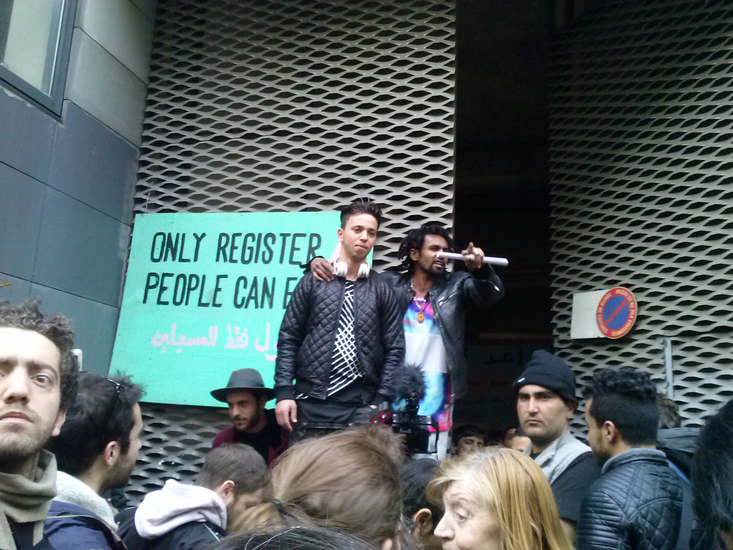 Des gens en galère prennent la parole pour dire combien de fois ils se sont fait expulser, montrer leurs blessures de guerre avec les CRS, raconter comment le camp de fortune de Stalingrad a été « démantelé », et comment après avoir fait croire aux gens qu’ils étaient pris en charge et relogés, les avoir mis dans des centres à droite à gauche, ou trimbalé dans un bus qu’ils ont vidé à coups de matraque en rase campagne…