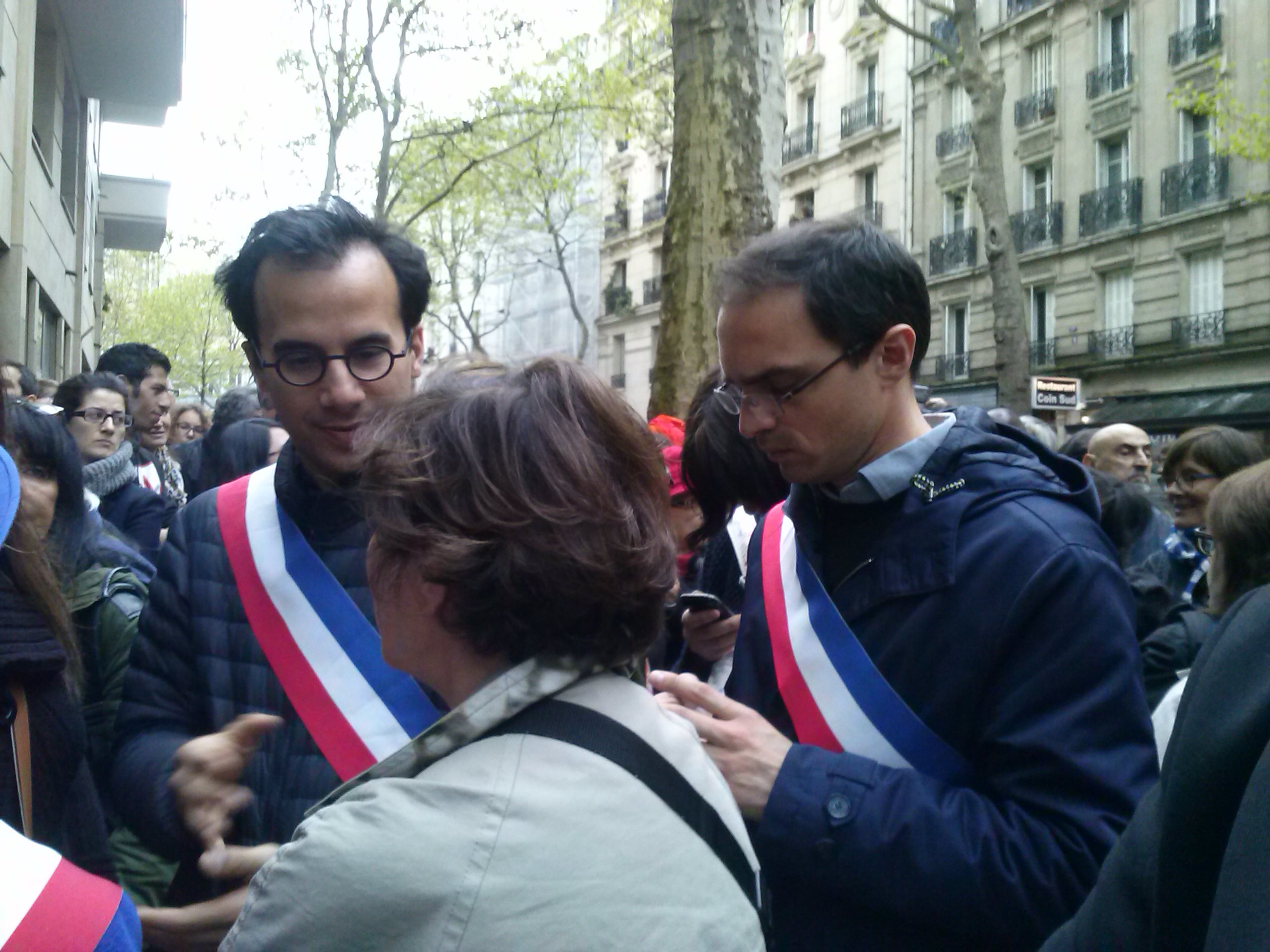 Mais on est sauvés ! car voici nos élus avec leur cocarde ! Simonnet (encore!) qui fait un discours avec des gros mots comme Sarko Pécresse Cazeneuve Houhou ! (fait la foule), « Ni Sarko ni Hollande » attention Danielle ! déjà que t’as la coupe de cheveux de Marine tu vas pas parler comme elle hein !