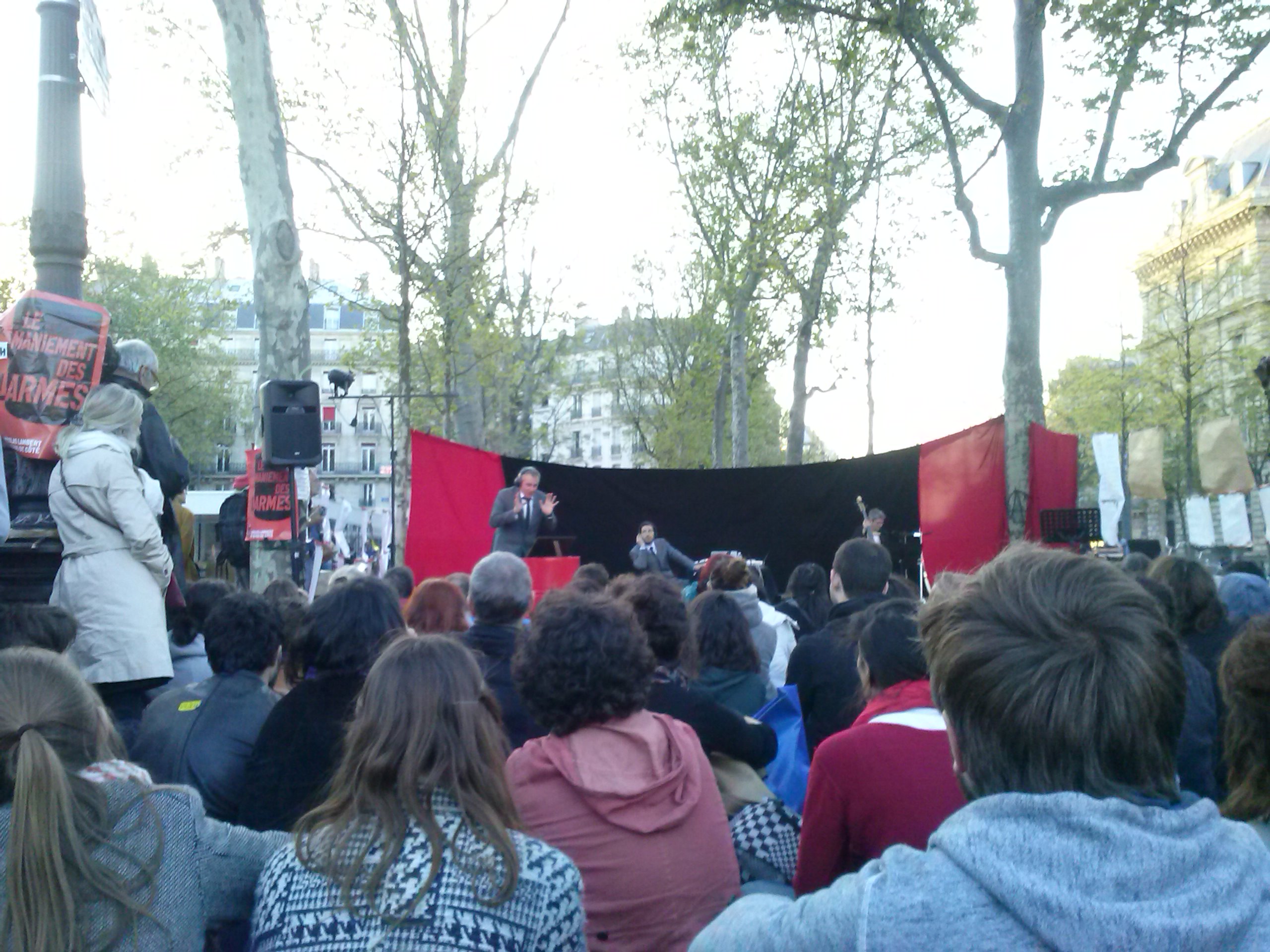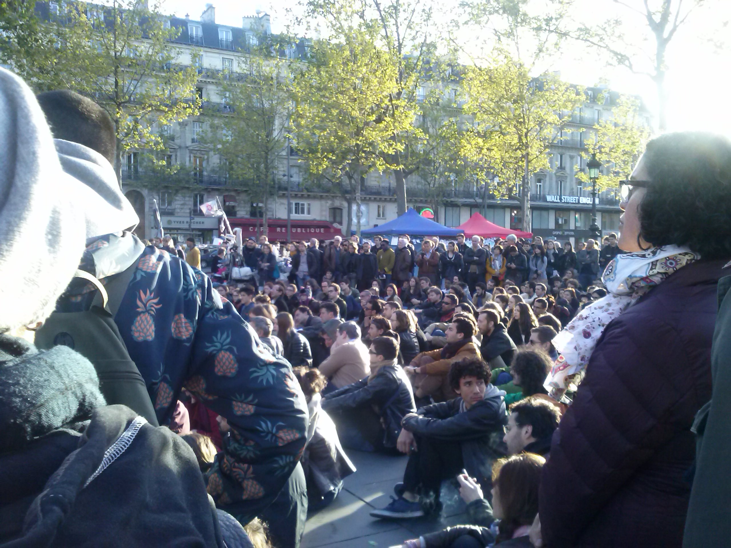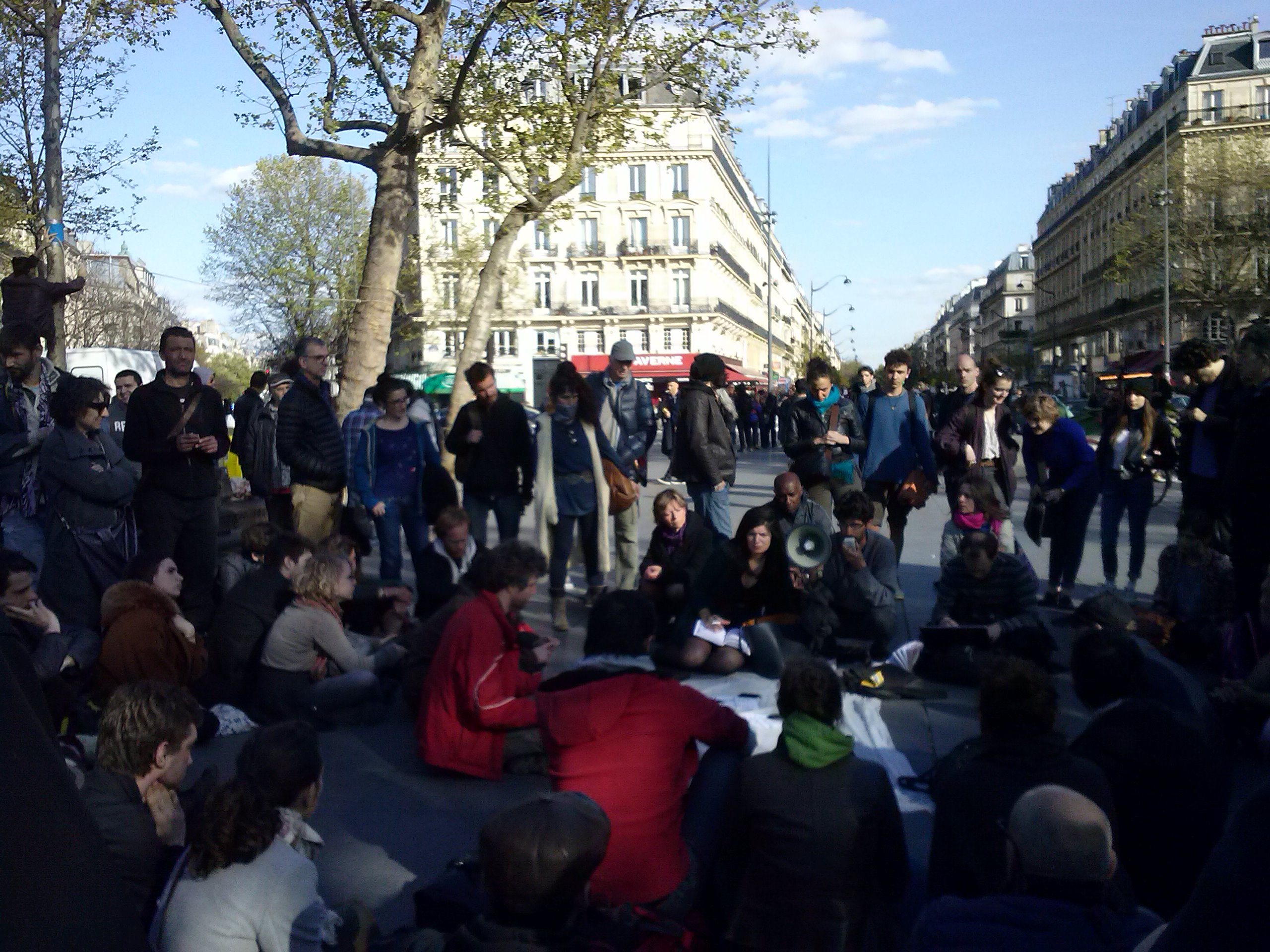 Ah voilà ! je vais à la comm’ vote test, pas mal ! les gens ont réfléchi à comment voter pour des grandes lignes qui rassemblent les gens de Nuit Debout. Il s’agit de réfléchir, par exemple, nuit debout est anticapitaliste oui ou non ? afin de créer des sous commissions qui débattent de comment on fait pour rester unis et démocratiques. On fait un test dimanche à l’AG extraordinaire, et on voit.