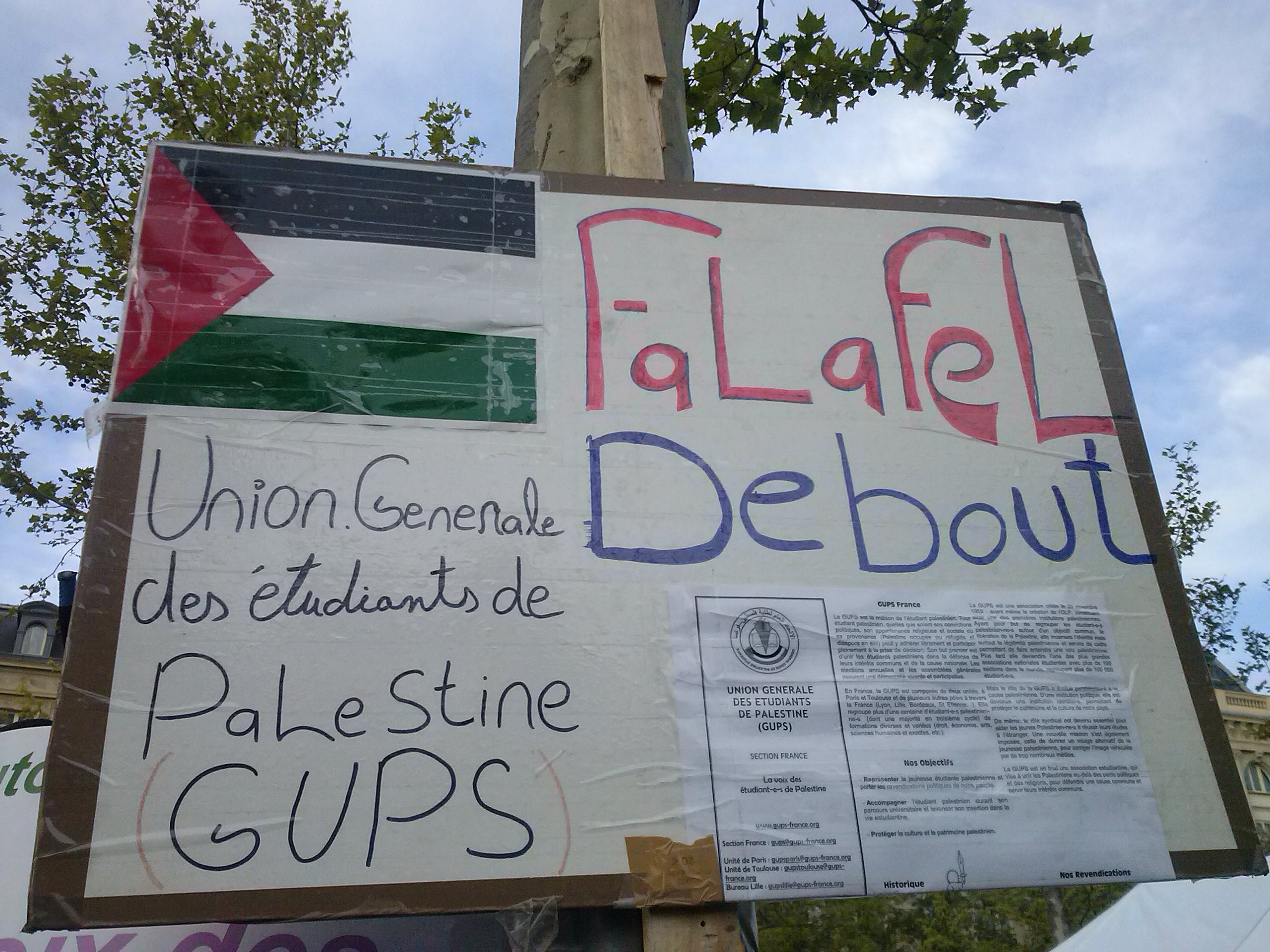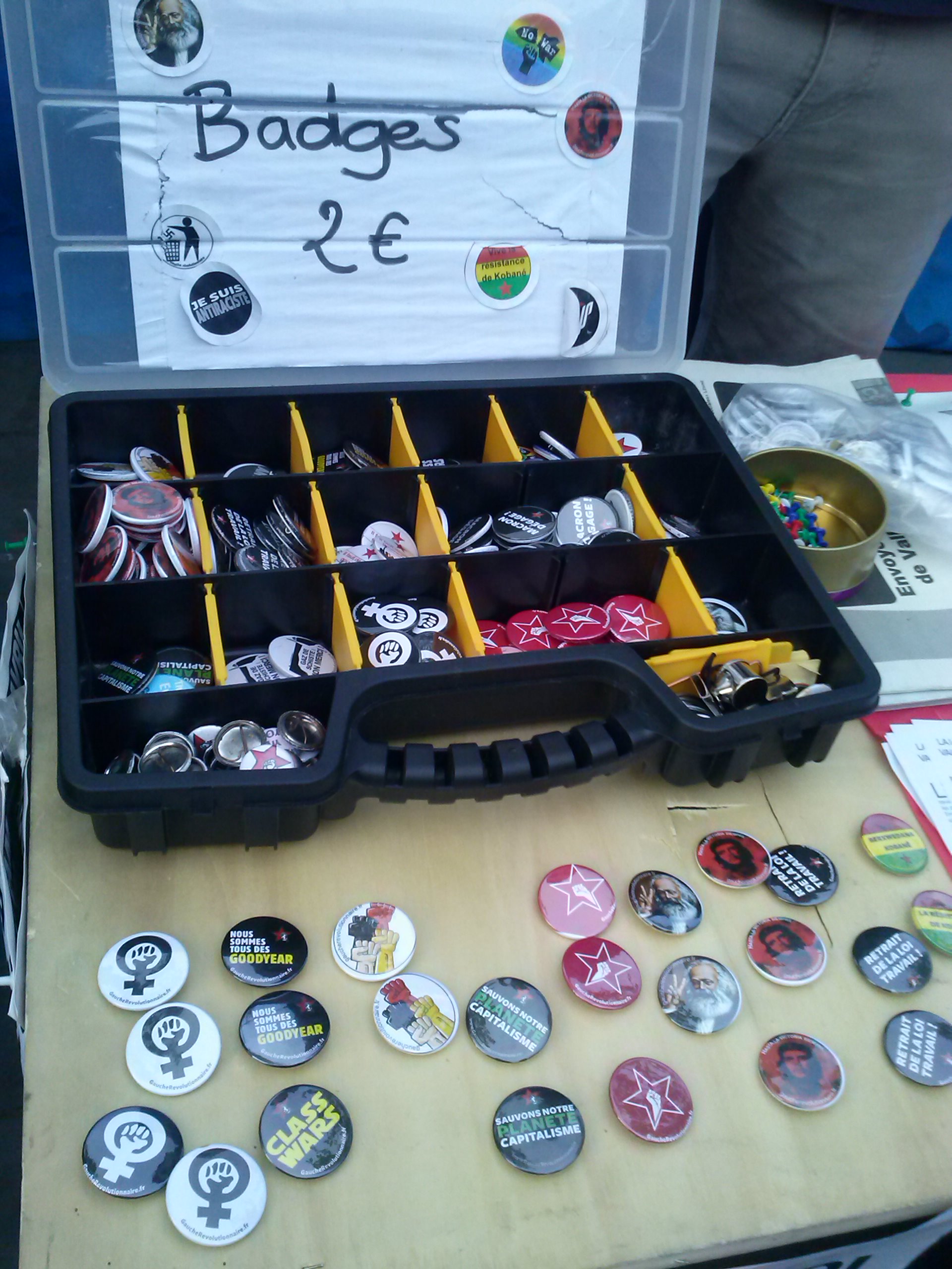 ahah ! y’en a qui perdent pas le nord, un parti vend des jolis badges, les falafels qui encaissent depuis deux semaines, font genre lutte pro-palestine aussi.