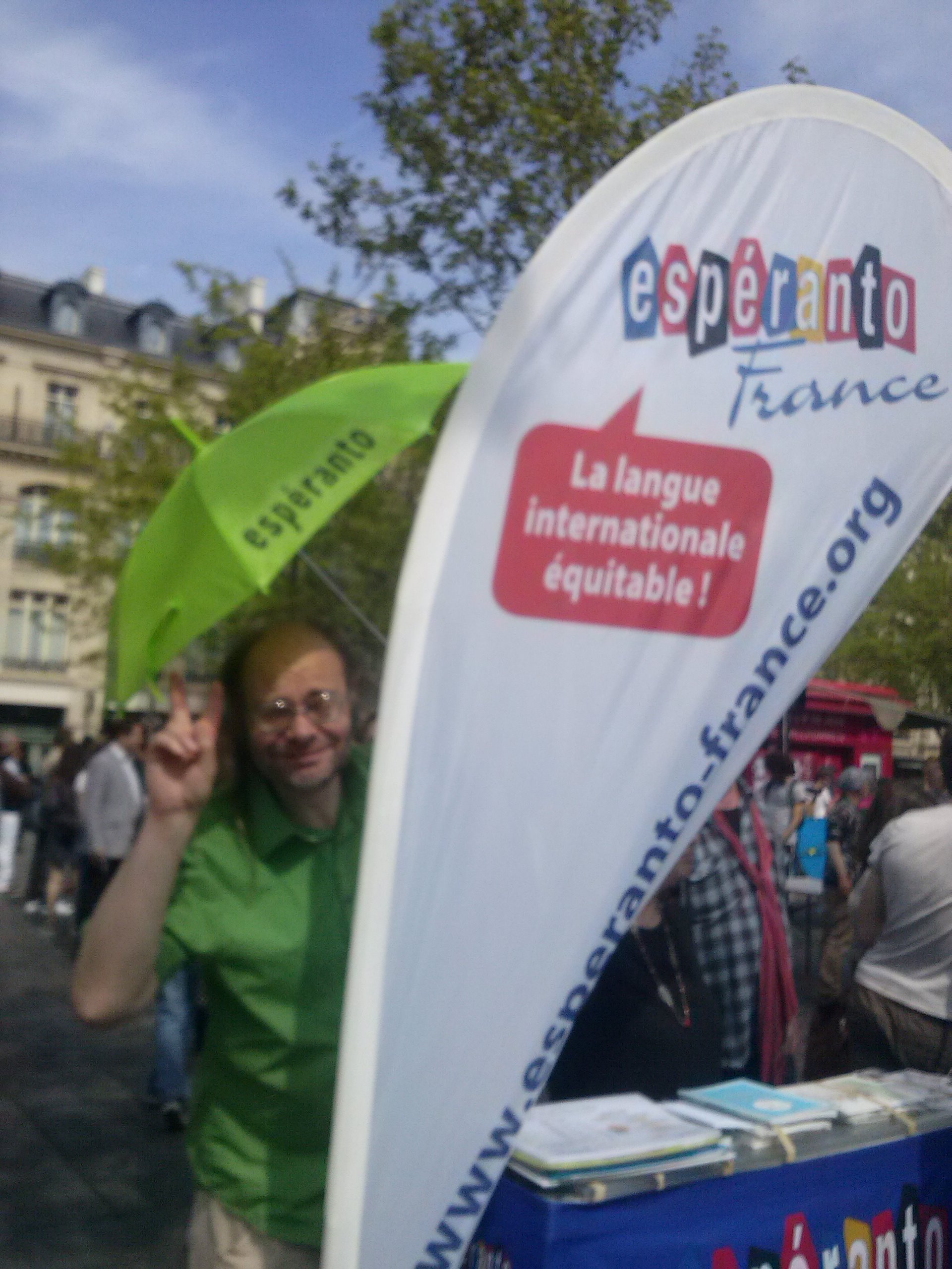 Des nouveaux stands sont là, par exemple, l’esperanto j’ai un cours gratuit, un monsieur m’explique comment marche cette langue et on fait des exos, ça a l’air assez simple on doit pouvoir causer vite.