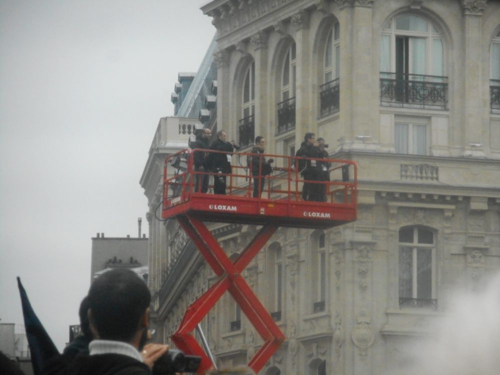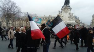 Je m’avance dans le boulevard du temple c’est par là qu’ils vont arriver, des petits groupes de gens arrivent avec des drapeaux bleus blanc rouge… tiens, ils les ont récup’ à l’UMP ?