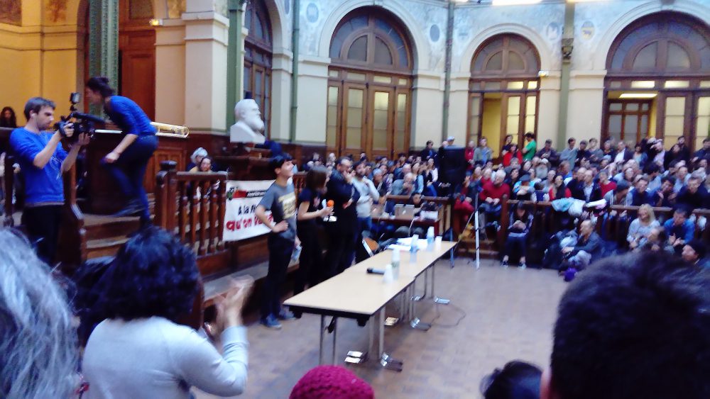 Bon la dernière fois que Lordon et Ruffin avaient fait un truc ici, j’ai pas pu rentrer, tellement y’avait du monde ça bloquait le bas du boulevard Magenta.