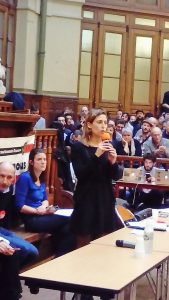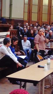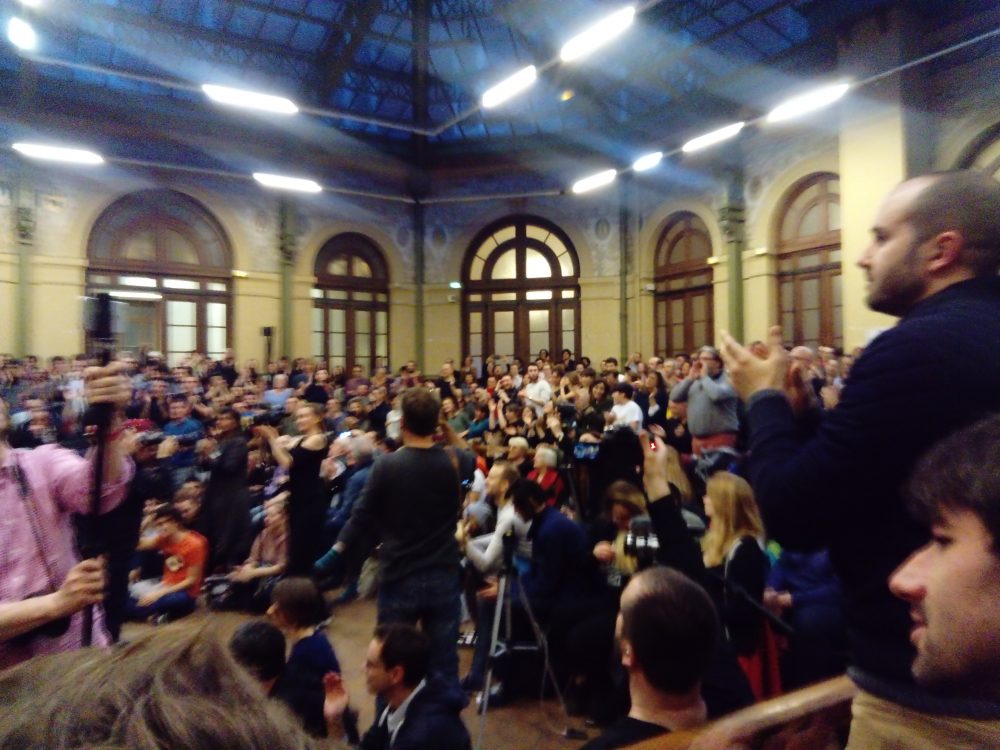 Bon, ça chauffe bien la salle après quelques chansons, puis ça commence, Ruffin nous explique qu’on est là pour raccrocher les wagons à la loco, et faire un point de départ géant à un grand mouvement social ! Yeah !
