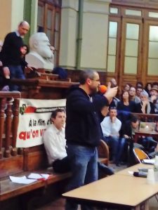 Après y’a eu le quart d’heure pas trop intéressat de moi aussi je veux parler dans le micro, bon c’est un peu chiant, je suis content d’être là, il faut de la démocratie, moi aussi je souffre au travail,… bon…A la fin Lordon a fait un beau discours, où il a dit que « la chimie du malheur général se convertit en rage, comme quoi la Chimie apporte de bonnes nouvelles, des fois ! »
