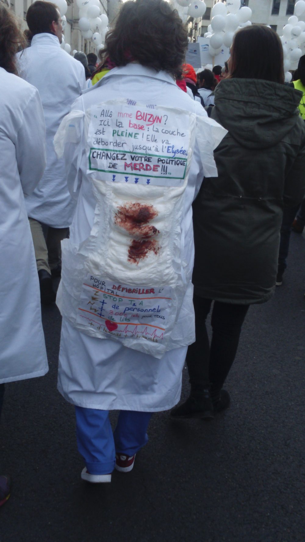 Dans les dernières manifs marrantes, on est allées à la gigantesque manif nationale des infirmières et autres blouses blanches… énoooorme ! et très tranquilles y’avait aucun flic voilà pourquoi…