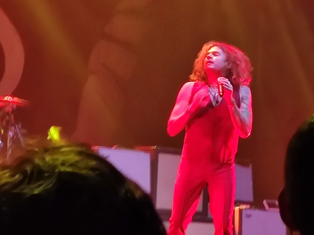 J’avais à ma gauche, une dame qui n’a absolument pas bougé et manifestait son amour du groupe par un cri unique et rauque à la fin de chaque chanson (et parfois au milieu des morceaux, dans les « respirations » entre deux couplets.) Étrange. Nous étions quelques énervés à bouger, au milieu d’une forêt de troncs d’arbres immobiles, inexpressifs, et armés de leurs téléphones pour filmer, sans bouger sinon c’est flou. Mais c’est du « live » !!! il faut le vivre pleinement ce moment, entrer en transe et laisser parler tes émotions.