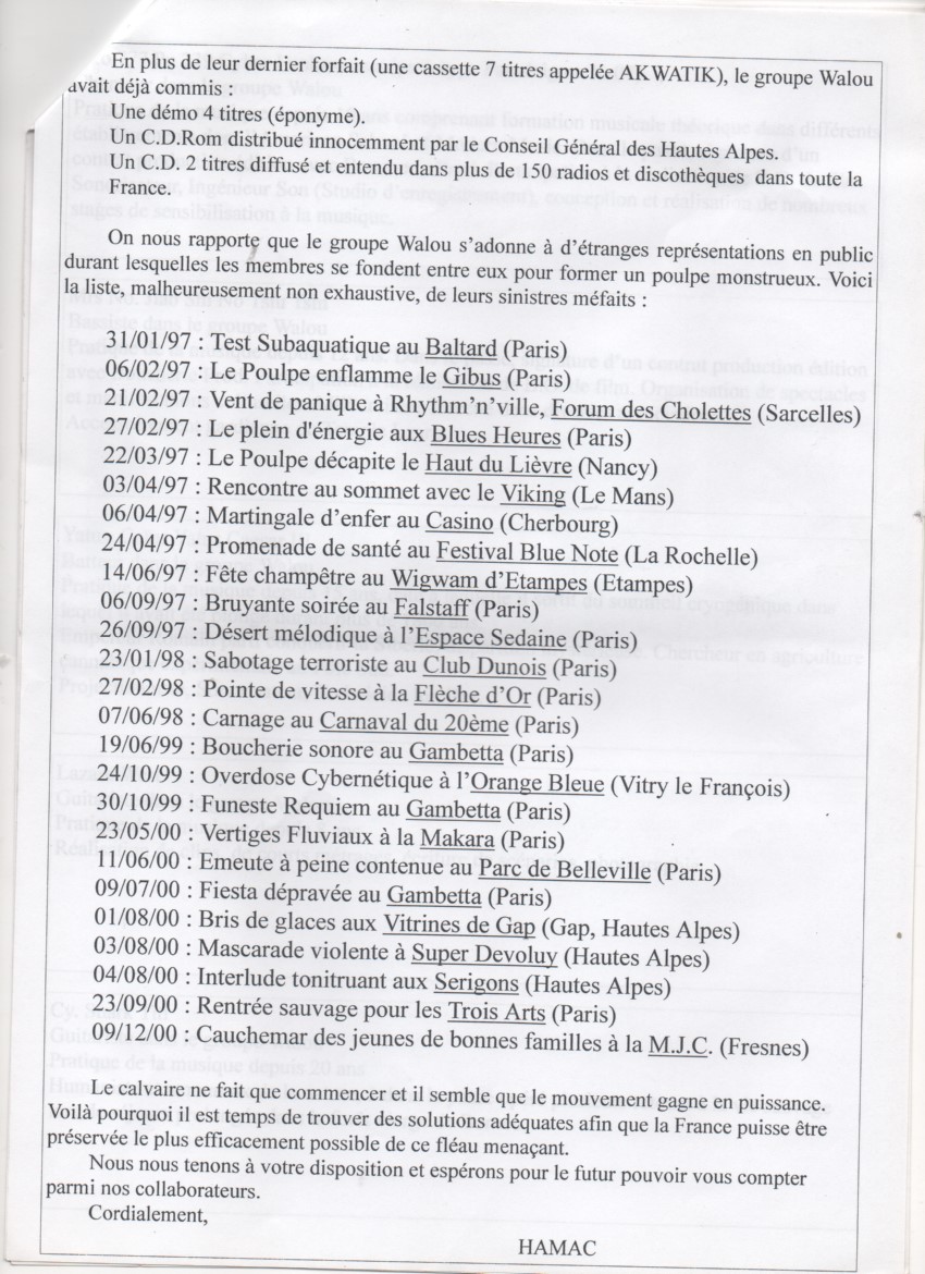 ?Pour les 25 ans de WALOU une petite rétrospective musicale avec son livret… et comme l’avait dit un « juge » de tremplin en 97 : « vous pourriez faire de la concurrence à FFF » après avoir dit « …vous êtes au dessus alors on va pas vous faire gagner, car… »